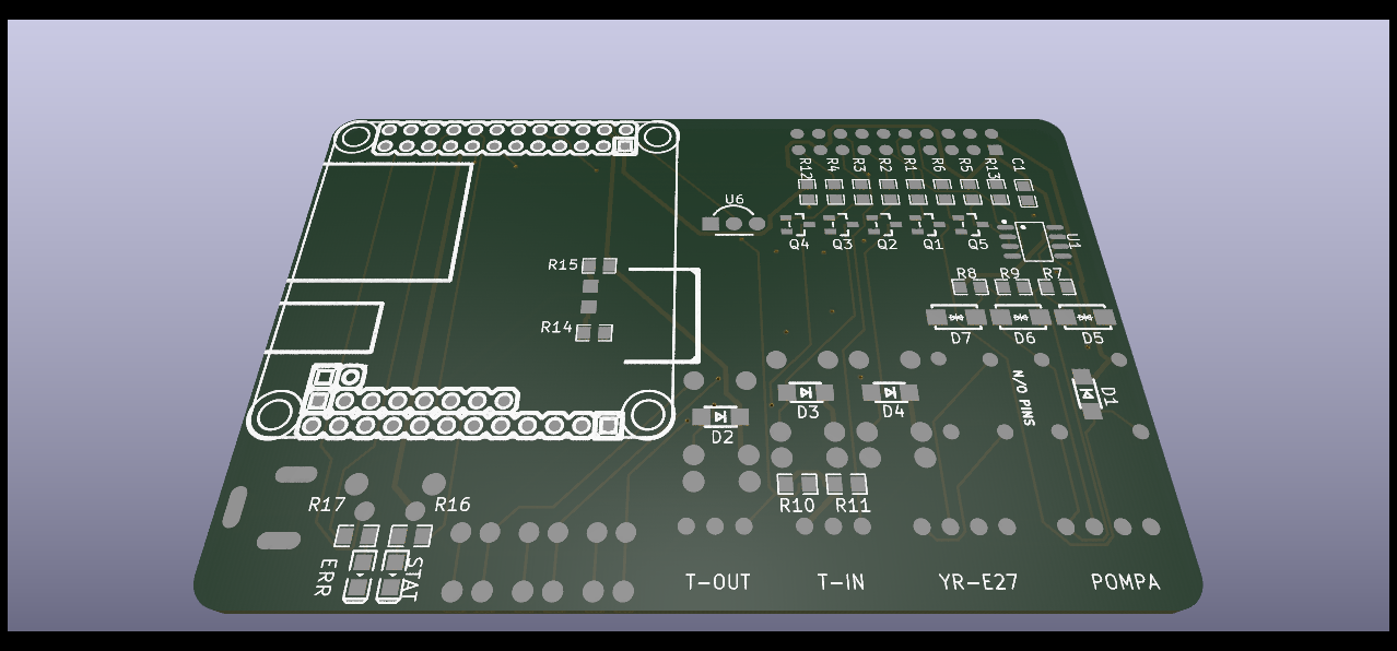 Jeśli chcesz korzystać z RaspberryPi nie lutuj nic w miejsce R14 i R15, Niestety zasilenie RaspberryPi poprzez GPIO nie jest do końca bezpieczne bo omija wbudowane w raspberrypi zabezpieczenia. Poprawnym sposobem zasilenie jest podłączenie pinu J2 na płytce sterownika do padu PP6 na RaspberryPi, oraz pinu J3 ze sterownika do padu PP1 na Raspberry